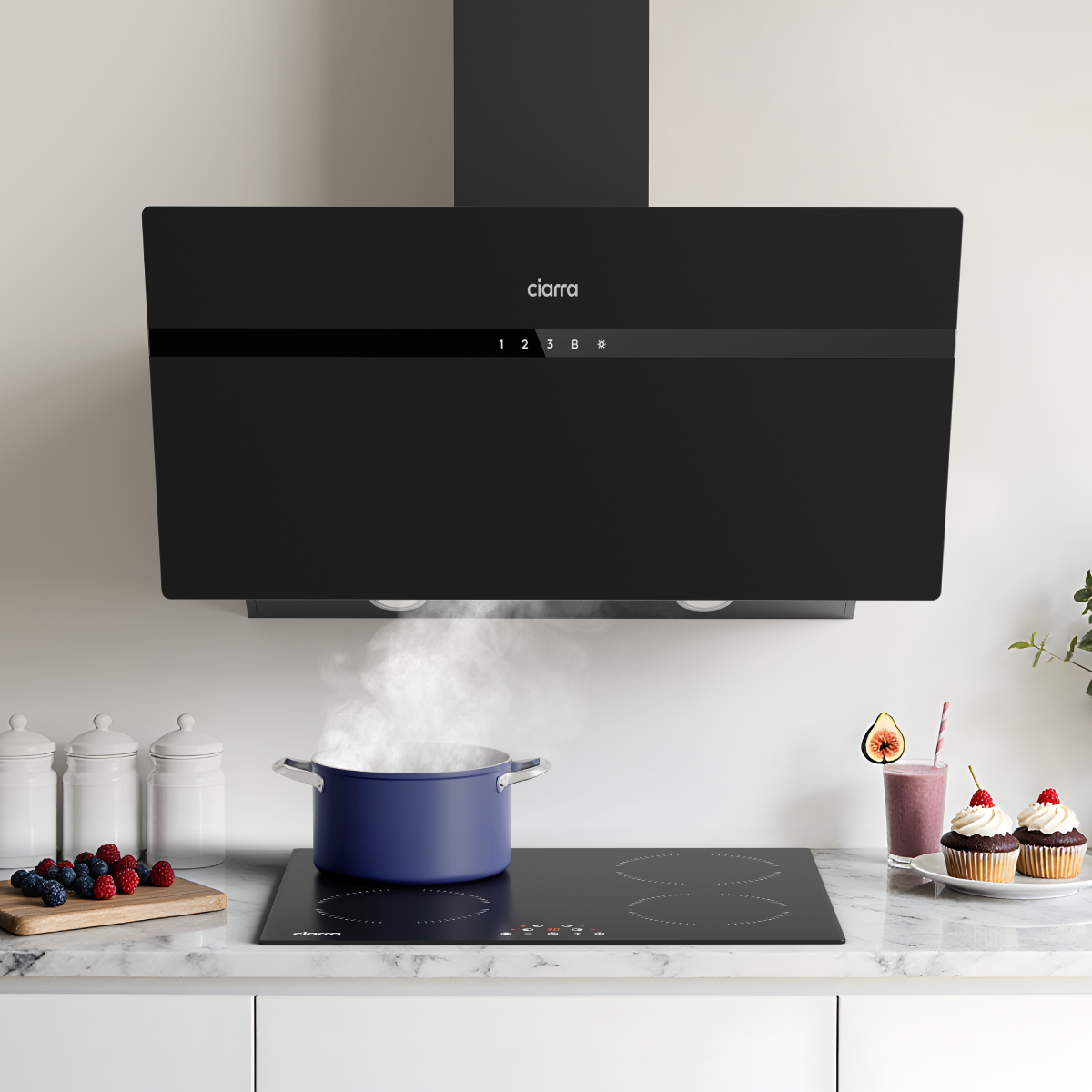 "The CBCW6736K hood has transformed my kitchen! Its white glass design is simply stunning—modern, bright, and easy to clean 🧼🤍. The suction is powerful and quiet, ideal even for intense cooking 🍳. "