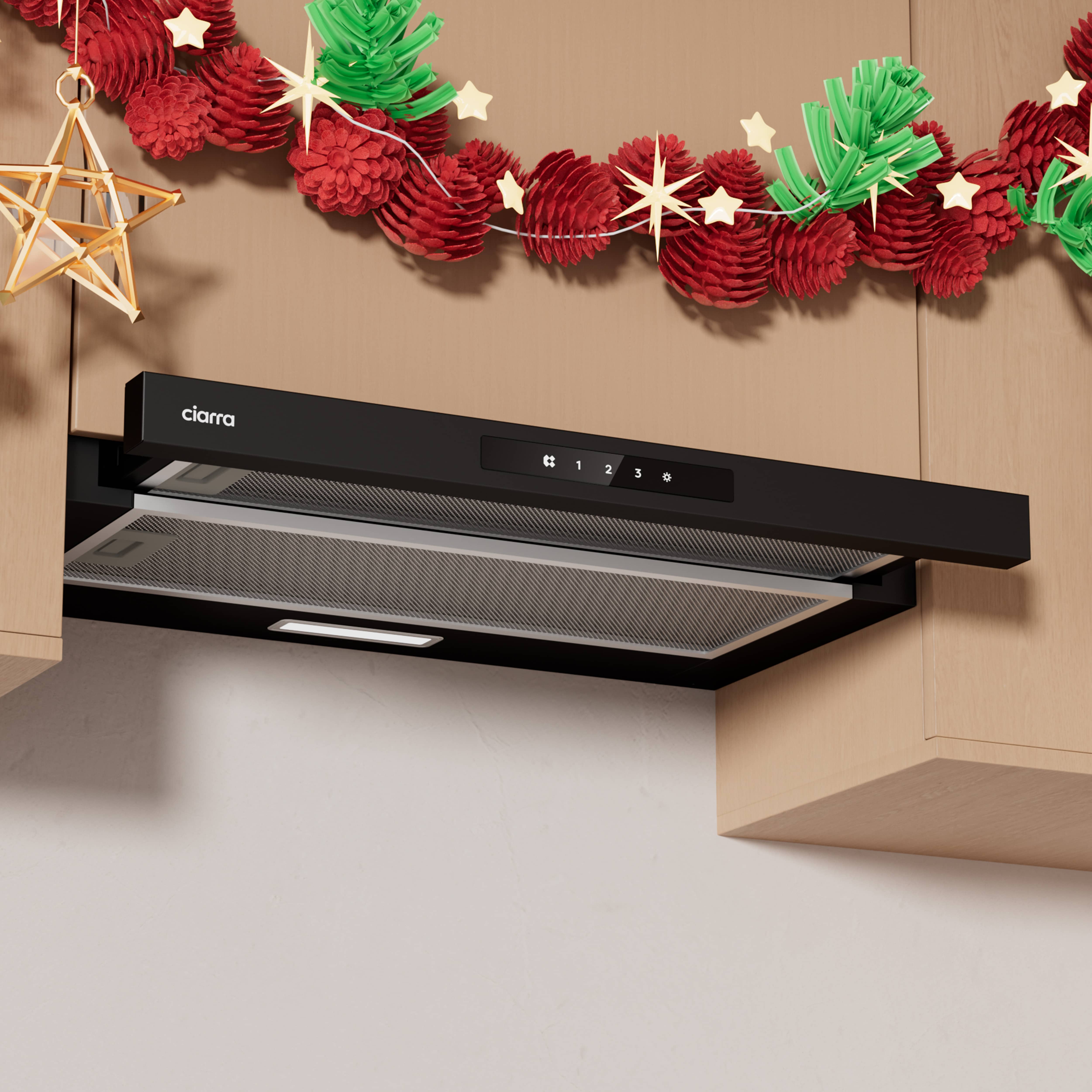 "This CIARRA cooker hood for me ticked all the boxes. Easy to install, good performance and nice aesthetics. I particularly like how the cooker hood filters came included in the install kit to help eliminate the horrible smells you get from frying food! But also importantly as an engineer it help keep the motor clean prolonging the appliance life. As with all cooker hoods the fixings are not standard but with a spirit level and tape measure an amateur DIY're can get this up on the wall! Highly recommend to anyone "