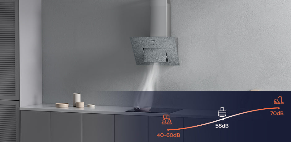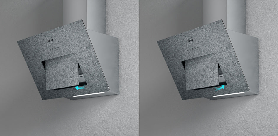 - 60cm angled cooker hood, 4 power levels, energy efficient A+++.