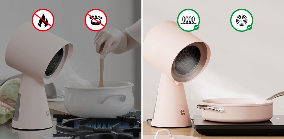 - ⚠️Attention⚠️: HOOD TO GO is recommended for use with cooking appliances (eg. induction cooker, electric grill, electric heating cooker, etc, and can not be used for open flame cooking. The air inlet should be as close as possible to the cooking surface of other appliances (no more than 10cm away) to improve the efficiency of the extraction rate.