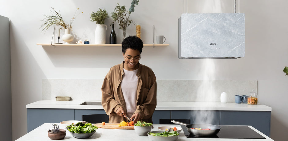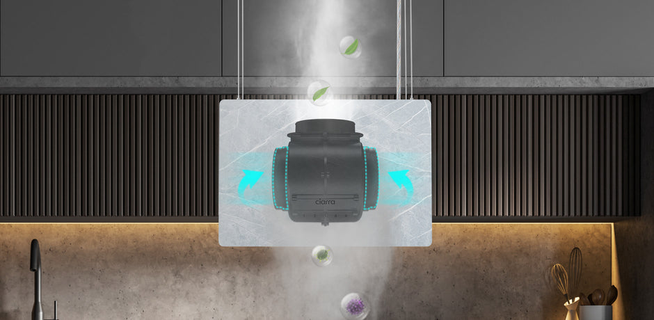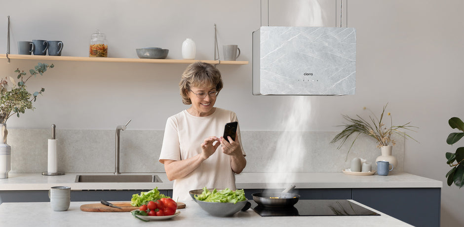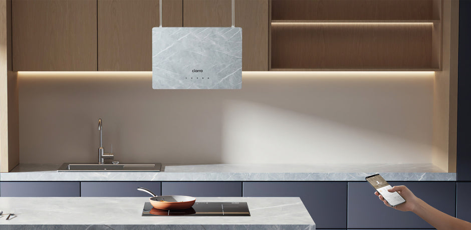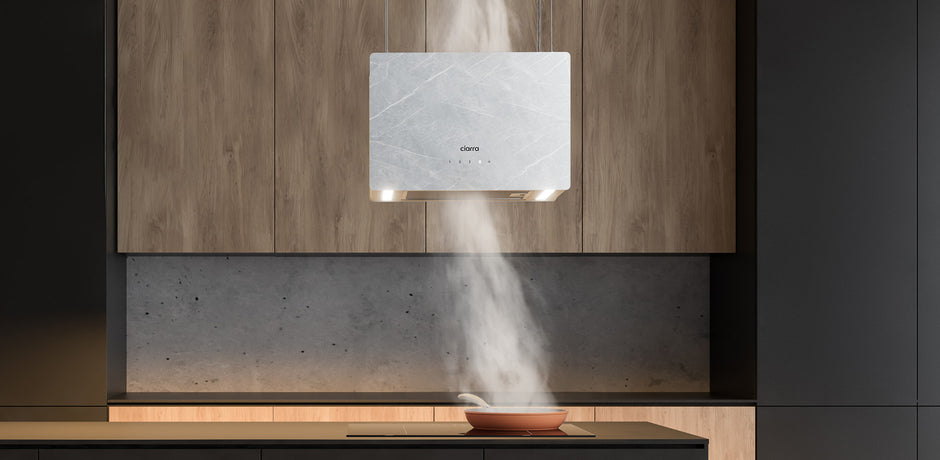 Ciarra Pinnacle 48cm Glass Smart Cooker Hood In Ivory Mist Marble CBCW4850-OW