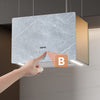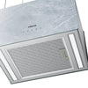 This cooker hood gets attached to your ceiling, by fixing a steel plate to a joist from which the cooker hood will hang. The 2m steel wires are adjusted to hang the hood at the desired height above your hob or cooker. The aluminum grease filter is located at the bottom of this cooker hood, and the carbon filter CBCF003 is included, so you can easily take it out and clean it, even after you have hung the cooker hood up.