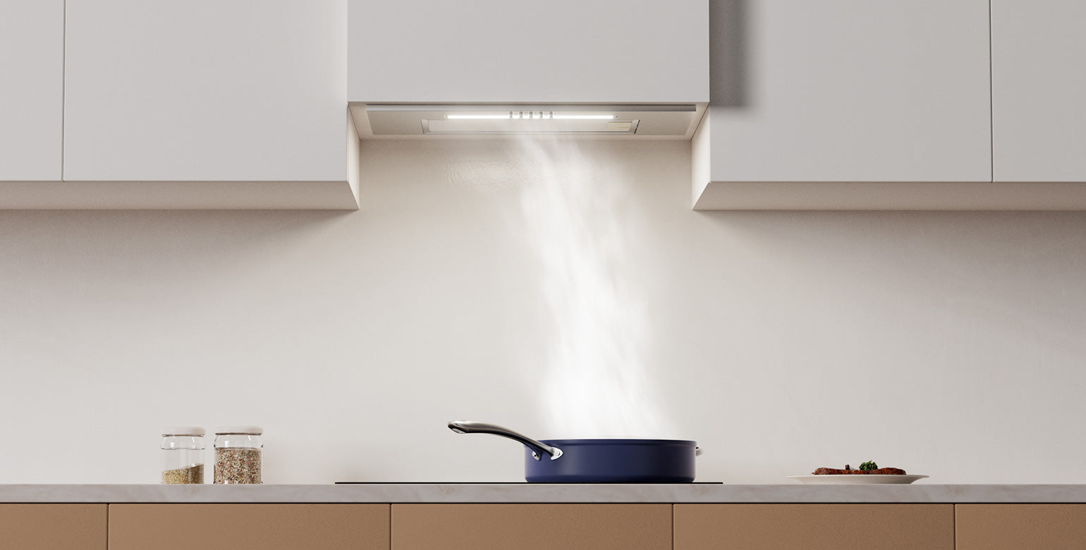 This hood can be vented up through the roof or out through an exterior wall. You should feel the air expelled from the exhaust cap on the ceiling or wall when the fan is running. Also, you can attach the CBCF005-OW carbon filter for better filtration (duct pipe not included).