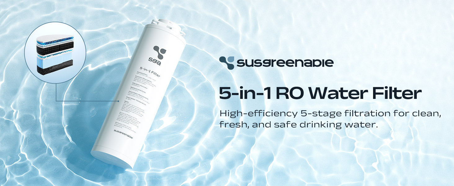 Ciarra x Susgreenable 5-in-1 Filters Reverse Osmosis Systems RO Water Filter Cartridge – 0.0001μm Ultra Filtration – SGROF03