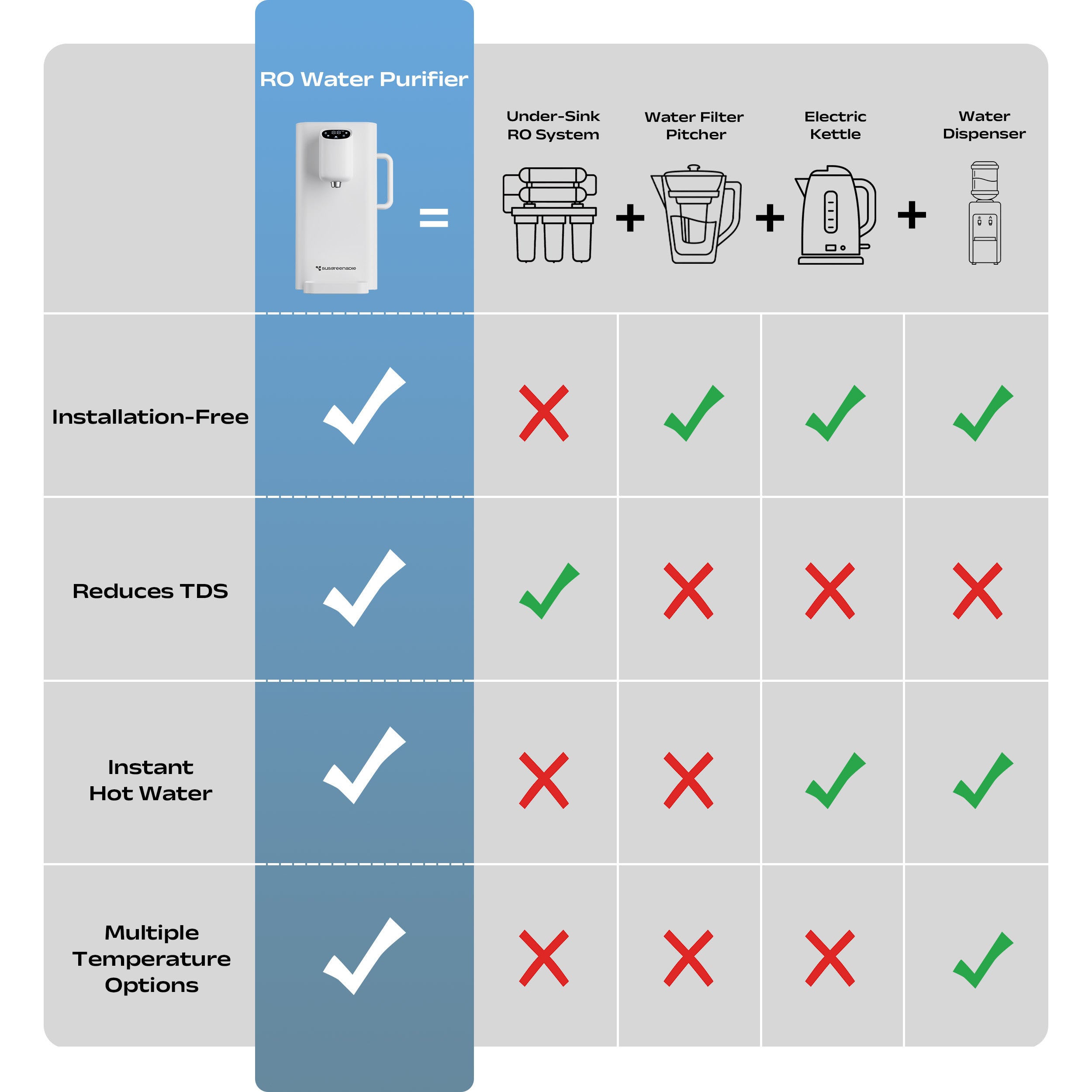 • 🛠️ Zero-Installation & Rental Friendly No plumbing or drilling required. This "Plug-and-Play" countertop design is perfect for apartments, offices, and renters. Move it anywhere without damaging your home.