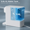 • 📱 Smart LED & Dual Tank Convenience Real-time filter life and water quality tracking via LED display. Removable 2.4L/1.0L dual tanks make refilling and hygienic cleaning effortless.