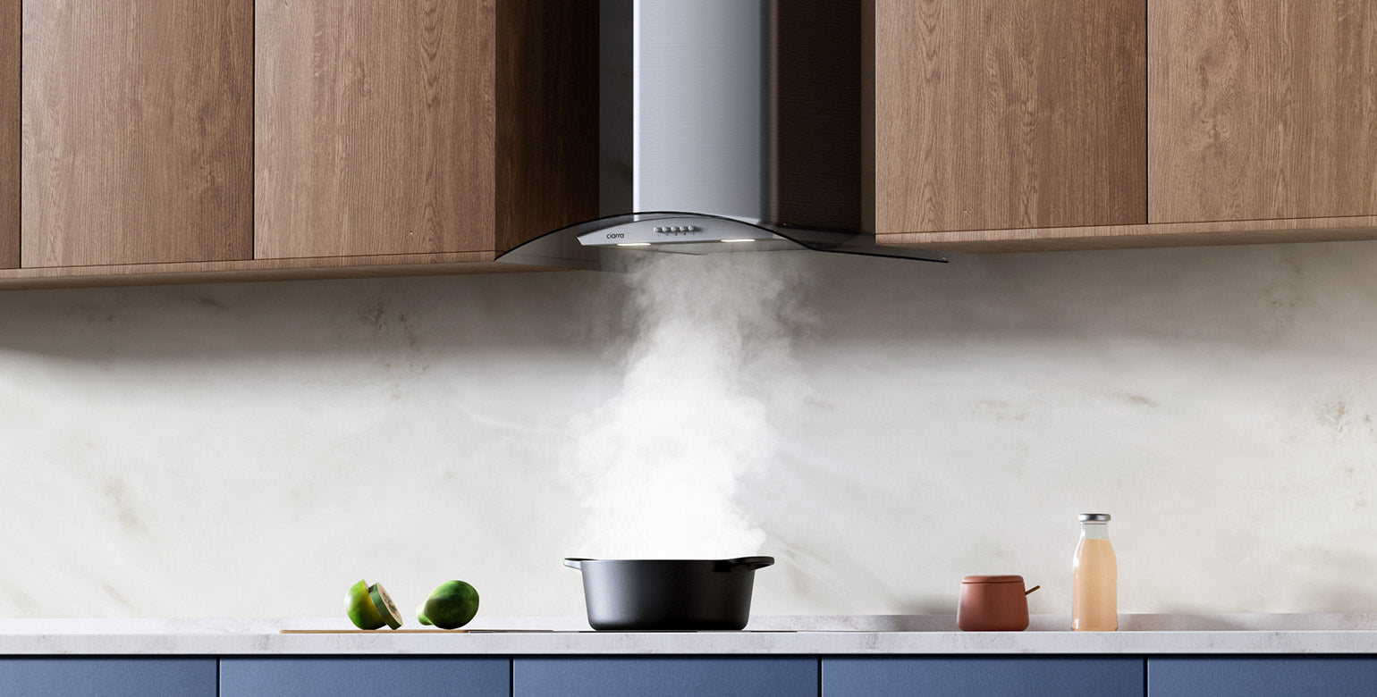 Ciarra gurved glass cooker hood