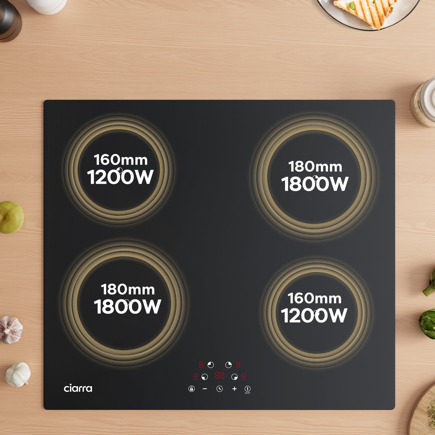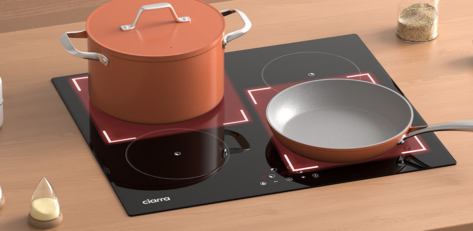 CIARRA 59cm Built-in Induction Hob with 4-ring Flexibility & Energy-Saving 9 Power Levels CABBIH4-F