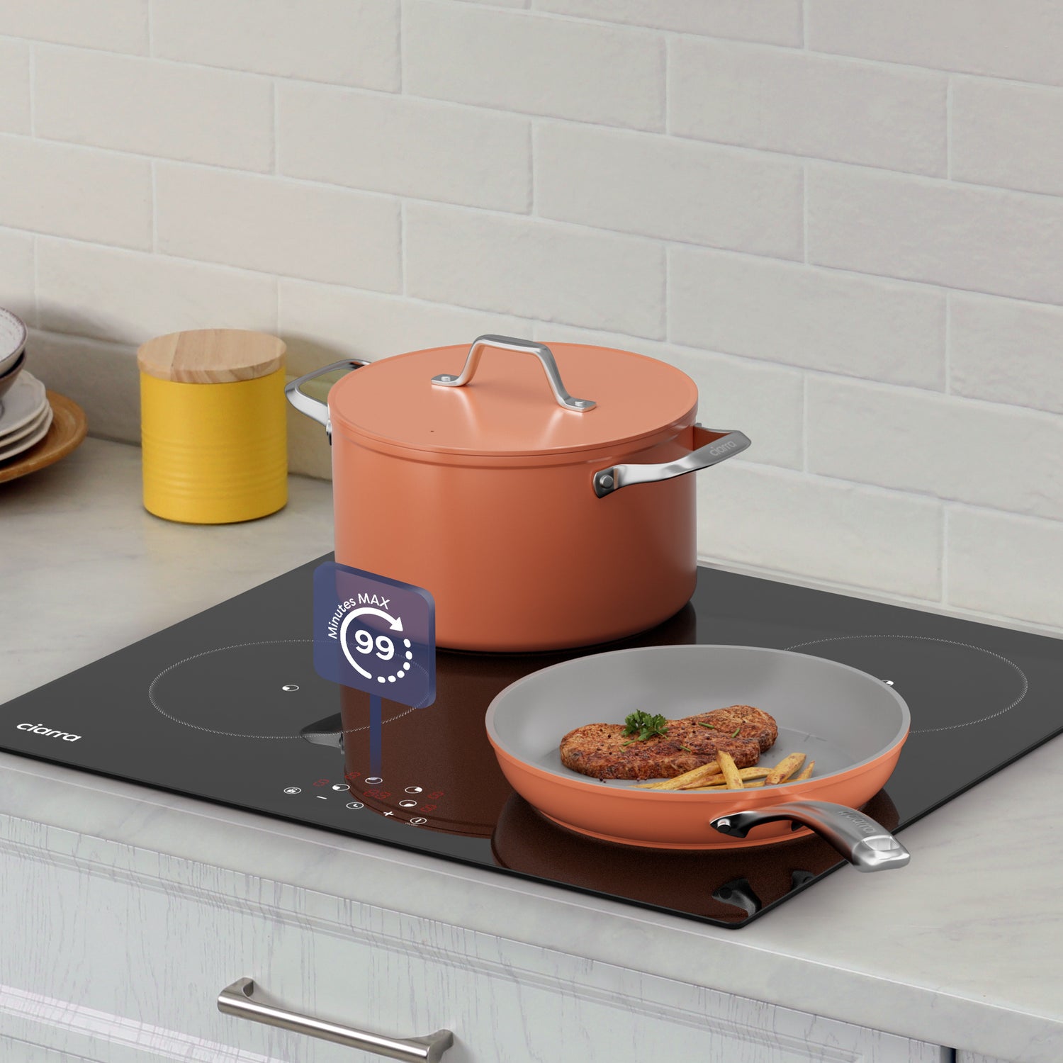 This induction hob is highly energy-efficient. It directly heats the cookware, minimizing heat loss and cooking times. Unlike traditional cooktops, it only consumes power when in use, making it a more energy-efficient option for your kitchen.