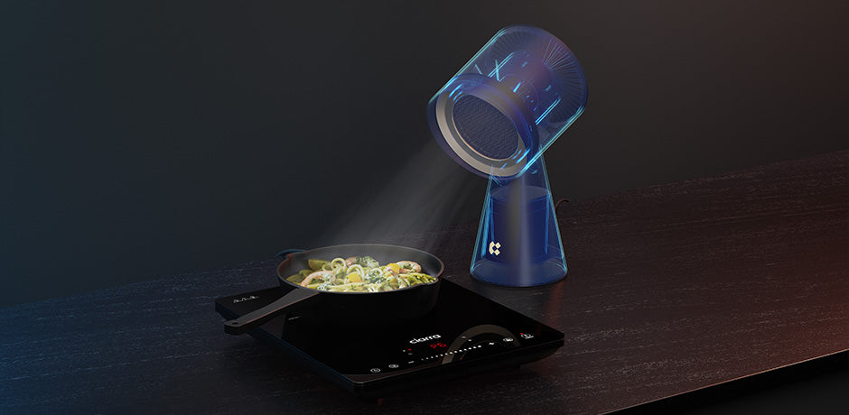 - ⚠️Attention⚠️: HOOD TO GO is recommended for use with cooking appliances (eg. induction cooker, electric grill, electric heating cooker, etc, and can not be used for open flame cooking. The air inlet should be as close as possible to the cooking surface of other appliances (no more than 10cm away) to improve the efficiency of the extraction rate.