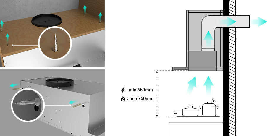 • Smart dual mode: Recirculation (carbon filter) or direct exhaust