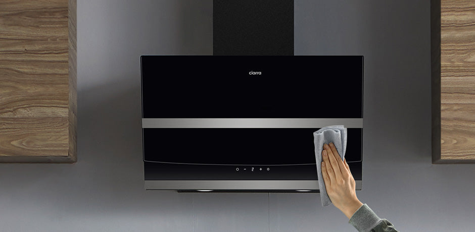 Ciarra’s stainless steel baffle filters are dishwasher-safe, simply remove them and place them in the dishwasher for easy cleaning, while carbon filters cannot be washed and should be replaced every 3–6 months depending on usage.