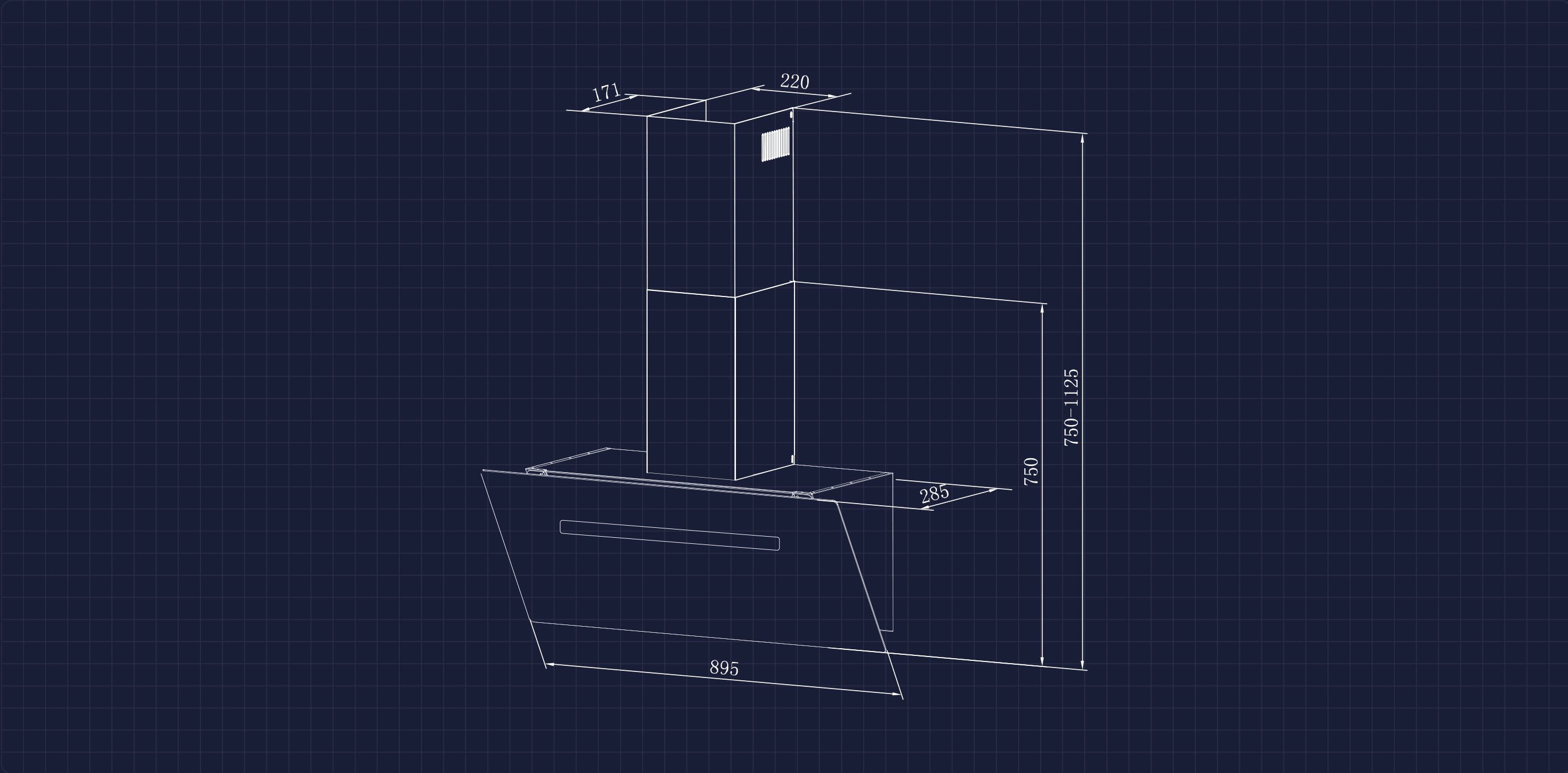 - 90cm wall mounted, maximum extraction 650m³/h, energy efficient: A++