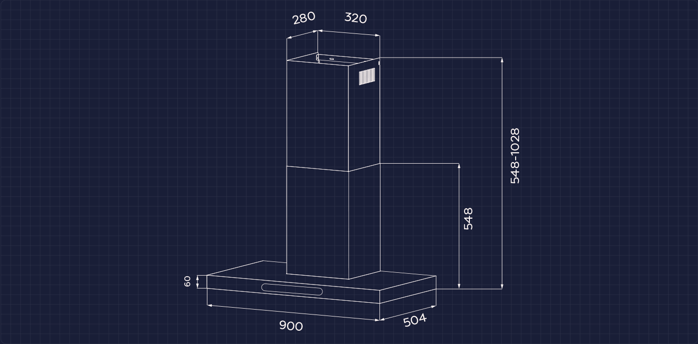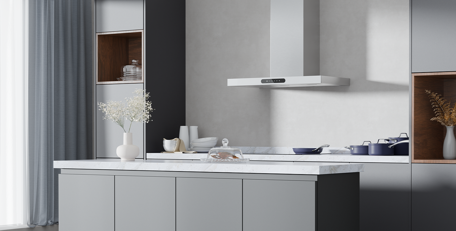 - Upgrade cooking with 90cm glass hood, max 650m³/h.