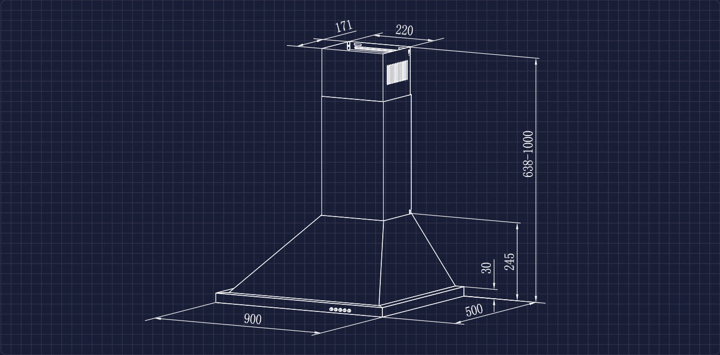 • 3 power levels, ducting on the top with a 1.5m pipe