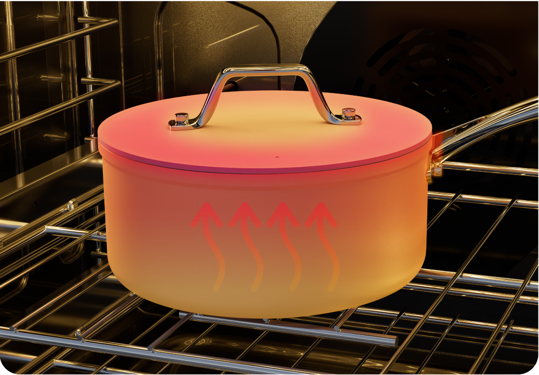Crafted with a sturdy aluminum body and iron-sprayed bottom, Ciarra Beyond collection guarantees exceptional heat transfer for swift and even cooking. Its oven-safe design withstands temperatures up to 230°C, expanding your culinary possibilities.