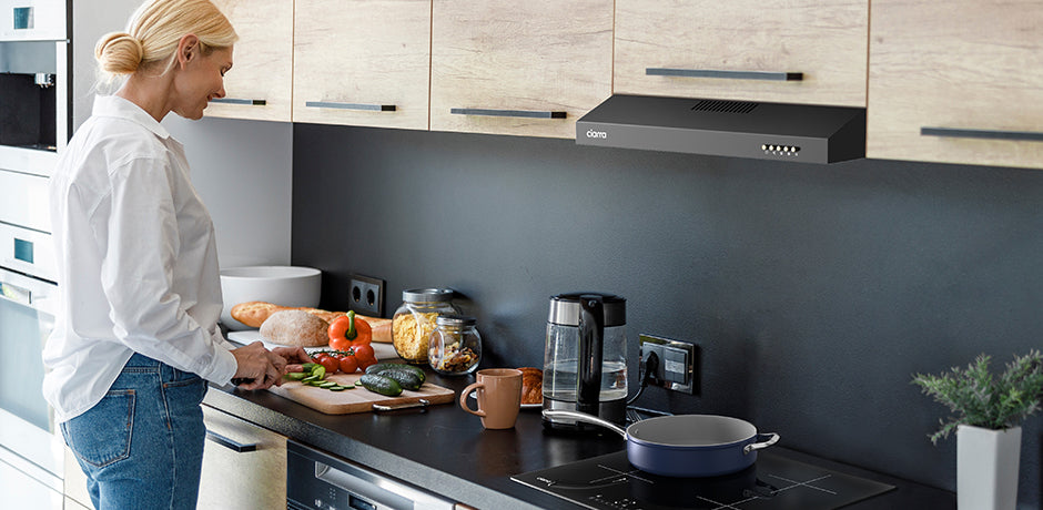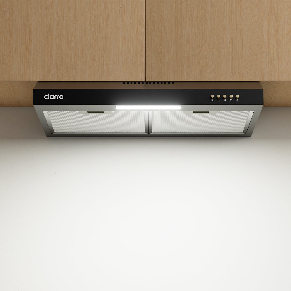 CIARRA 60cm Slim Cooker Hood in Black Under Cabinet CBCB6903D-B