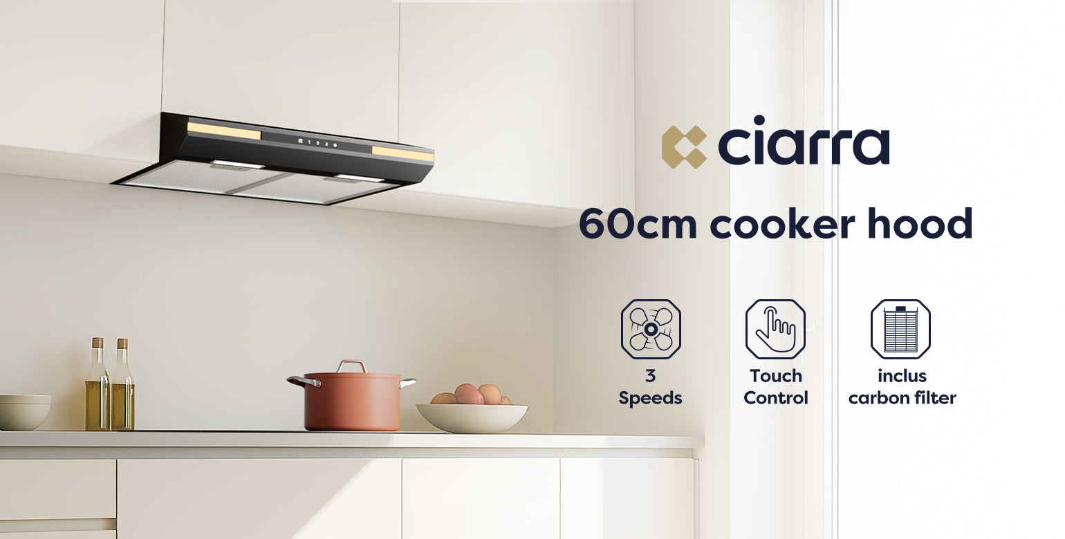 CIARRA 60cm Slim Under Cabinet Cooker Hood | Touch Control, LED Light, Carbon Filter Included CBCB6921-OW