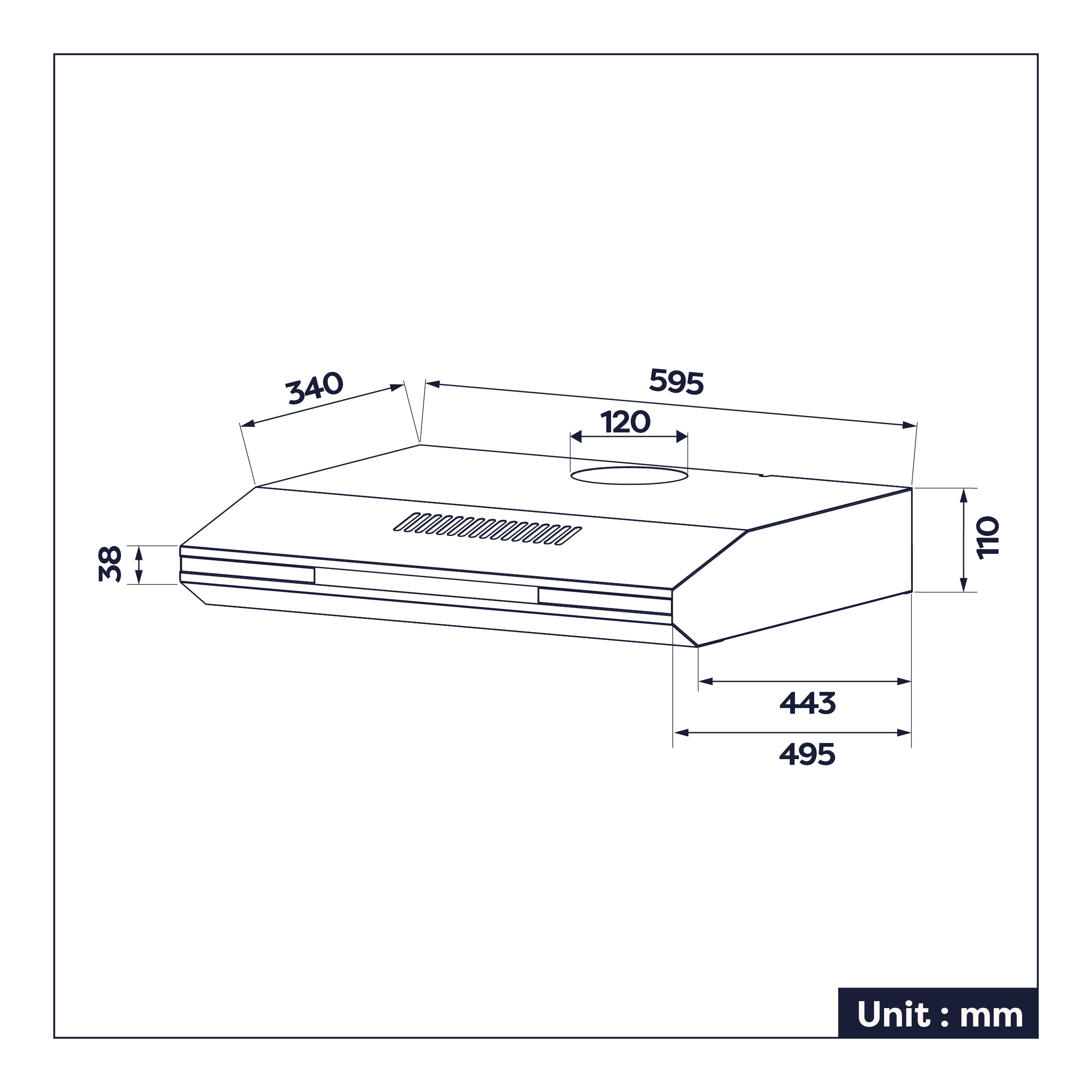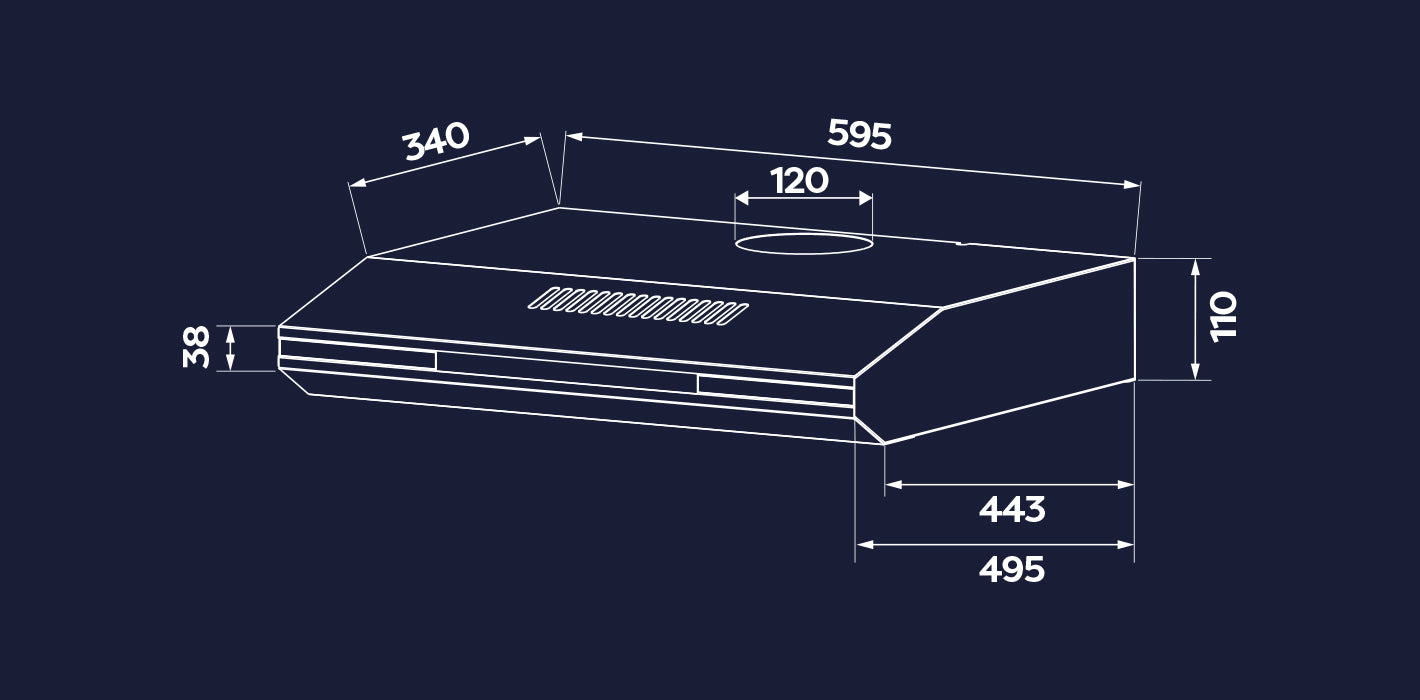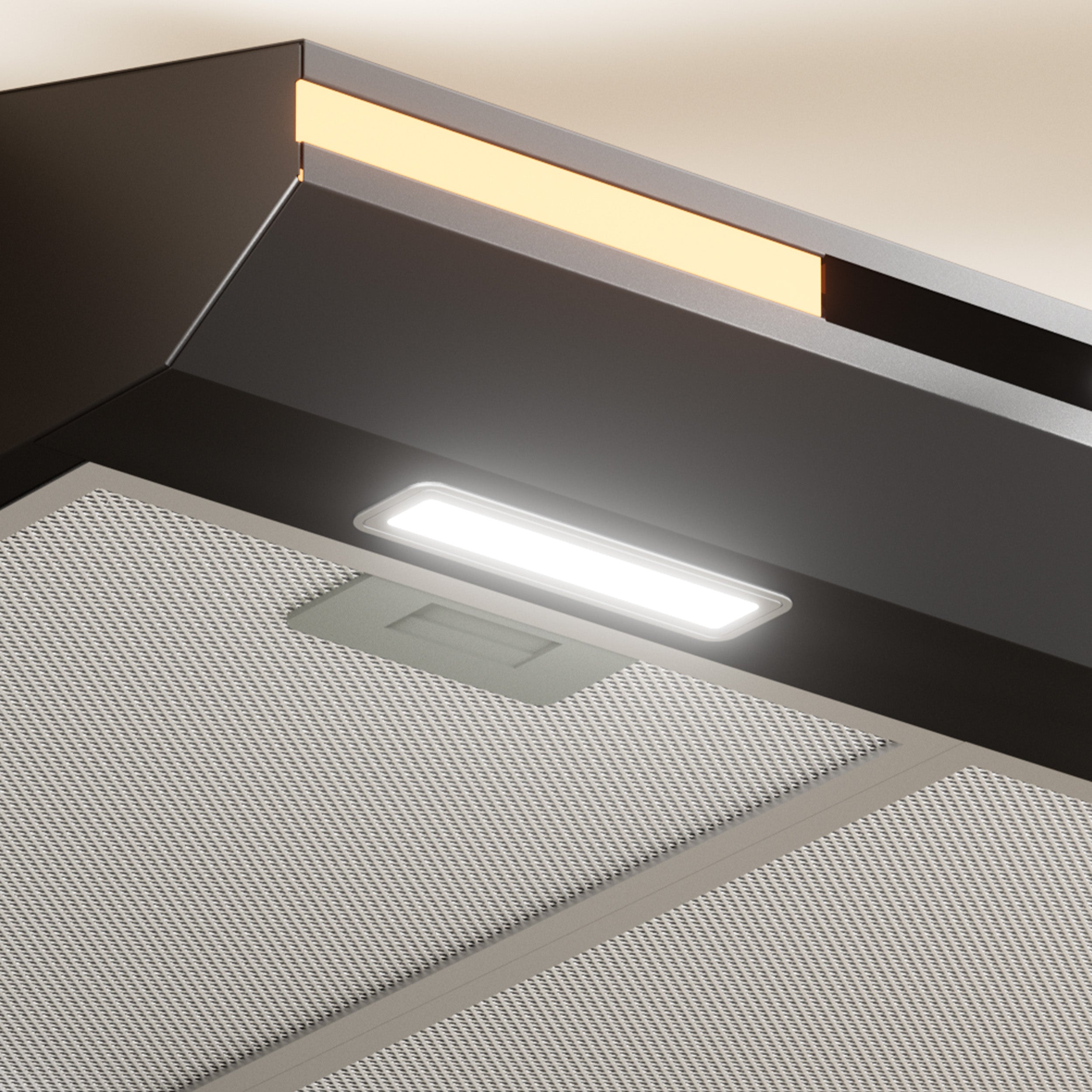 - 60cm slim under cabinet cooker hood, perfect for compact kitchens