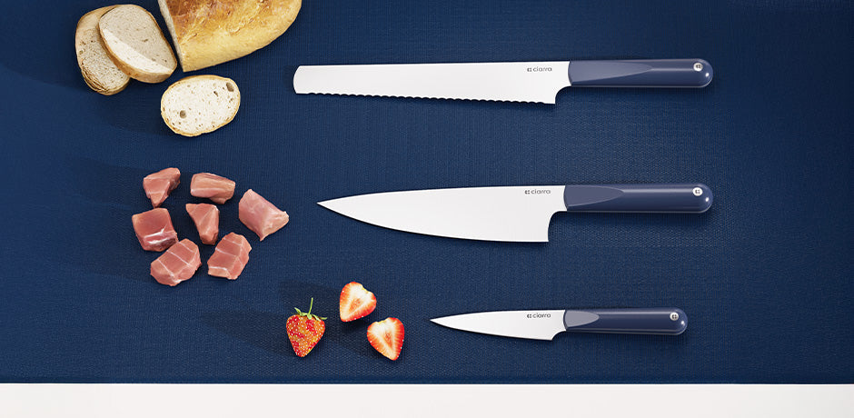 • BASIC AND VALUE: This 3-piece knife set includes a 8.3 inch chef's knife, a 9.5 inch serrated bread knife, and a 4.3 inch utility knife, offering a complete and highly affordable solution for everyday cooking needs. Perfect for home kitchens or as a starter set.