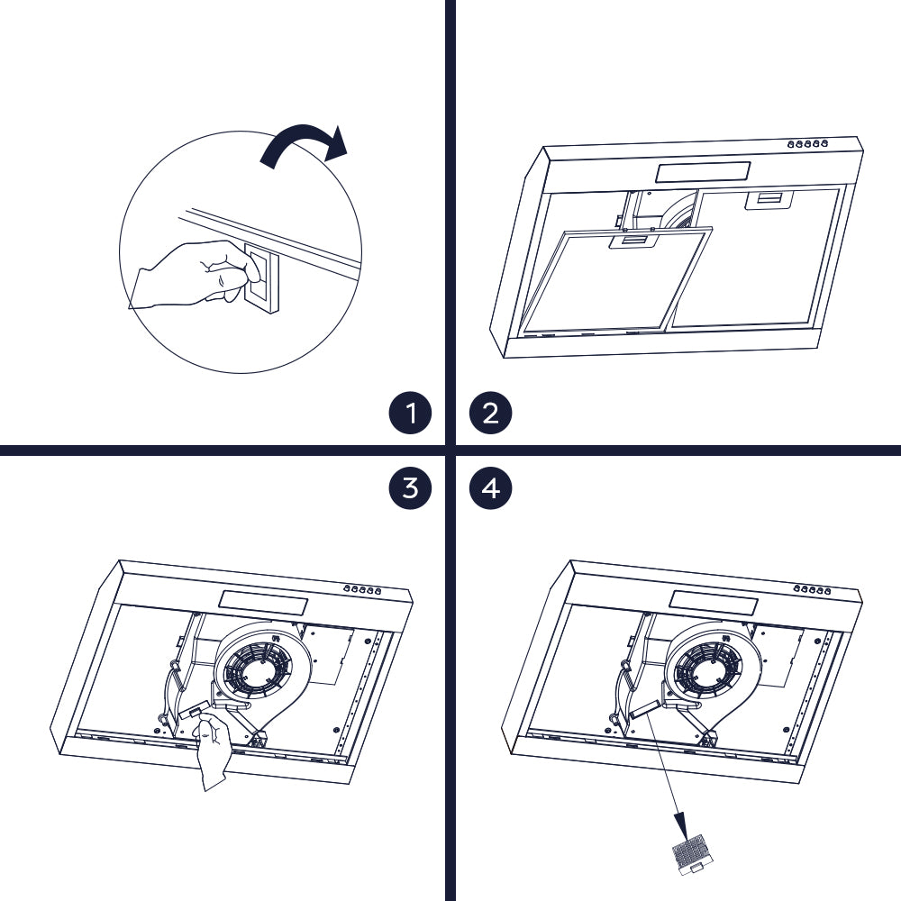 To ensure the best performance of your extractor, you should replace the carbon filter every 2 to 4 months, depending on use.
